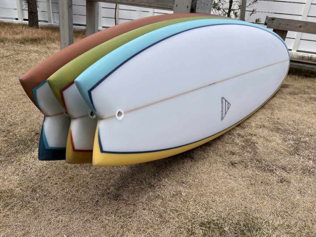 フィンはトライ&クアッドの5フィン仕様で、トライフィンで攻めるのもヨシ、クアッドで気持ち良くクルーズなど、スタイルやコンディションに合わせて楽しめます⭐︎