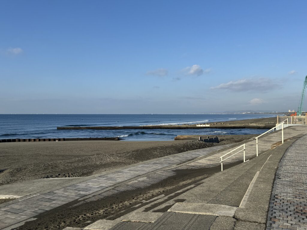 サイズは、膝〜ももたまのセット腰近く! セット間長めですが、たまに来るセットは大き目の板なら充分遊べそうです! 17時が満潮で潮が上げきると割れ辛くなりそうなので、早めの1ラウンドをオススメします!